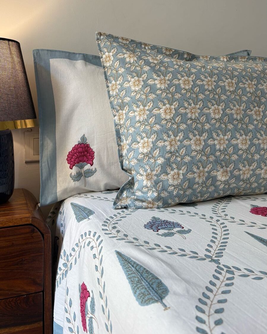 Elevate your bedroom aesthetics with our luxurious floral king-size bedsheet – a perfect blend of elegance and comfort! Crafted with precision and handcrafted using the screen printing technique, this soft, breathable fabric ensures a cozy and stylish sleeping experience.