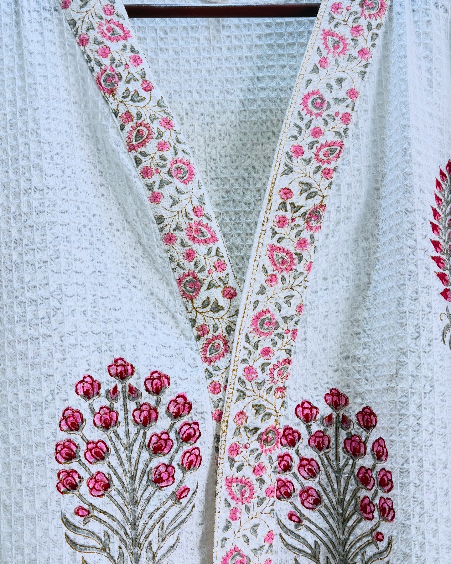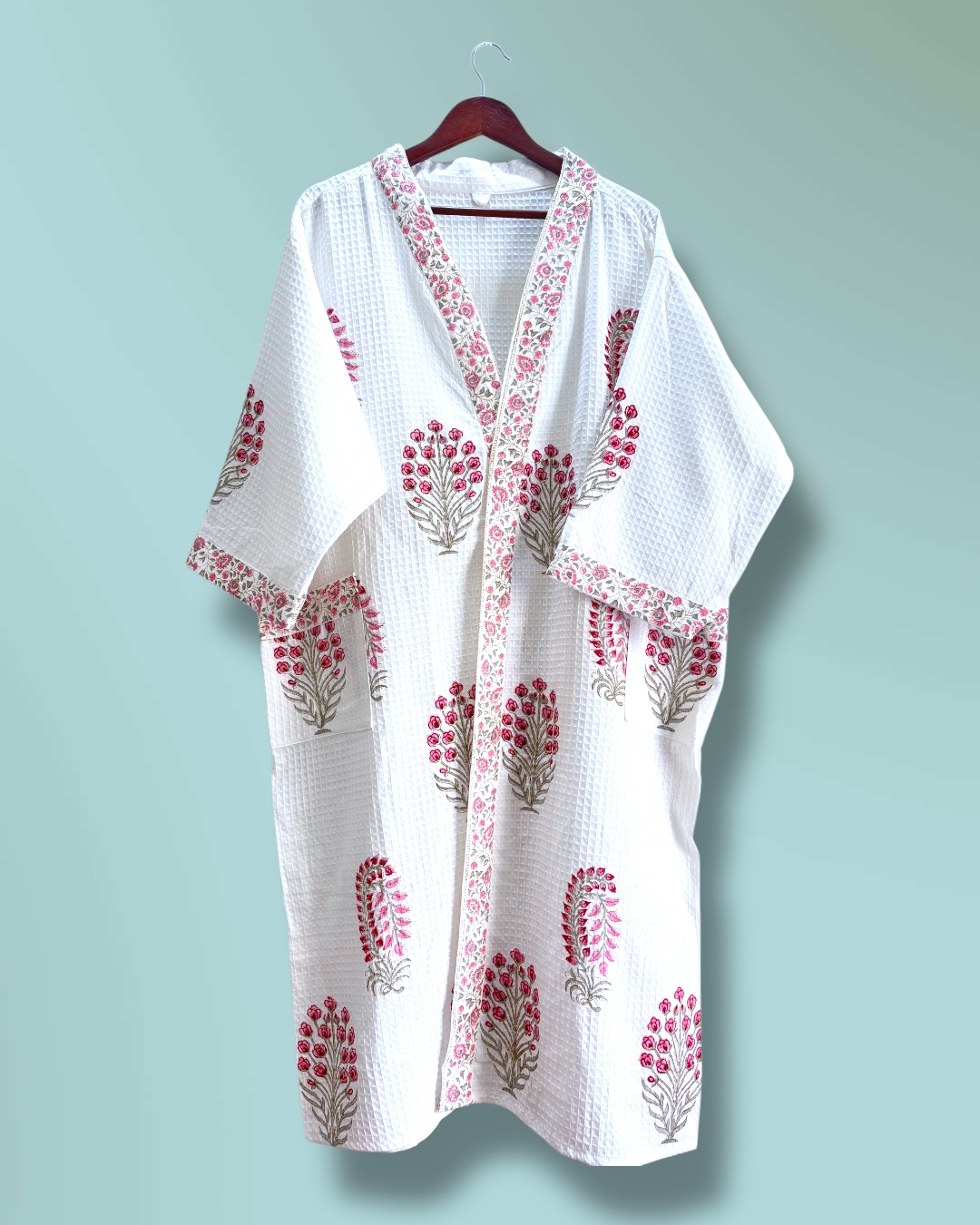 Handblock printed – Waffle Cotton Bathrobe – Unisex