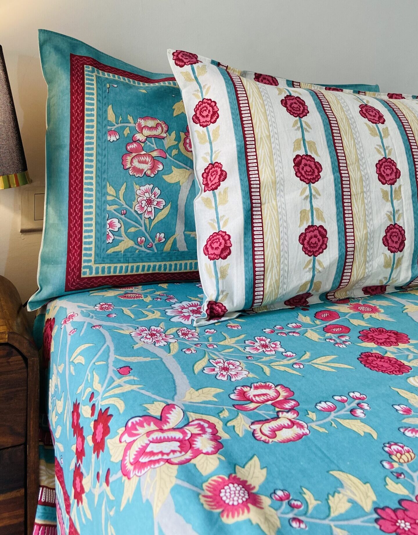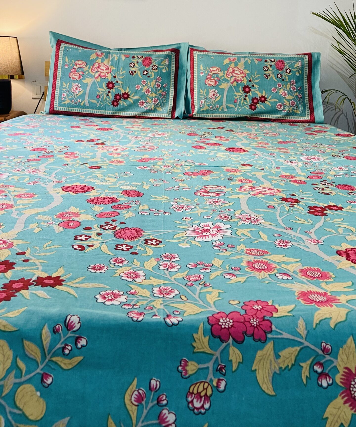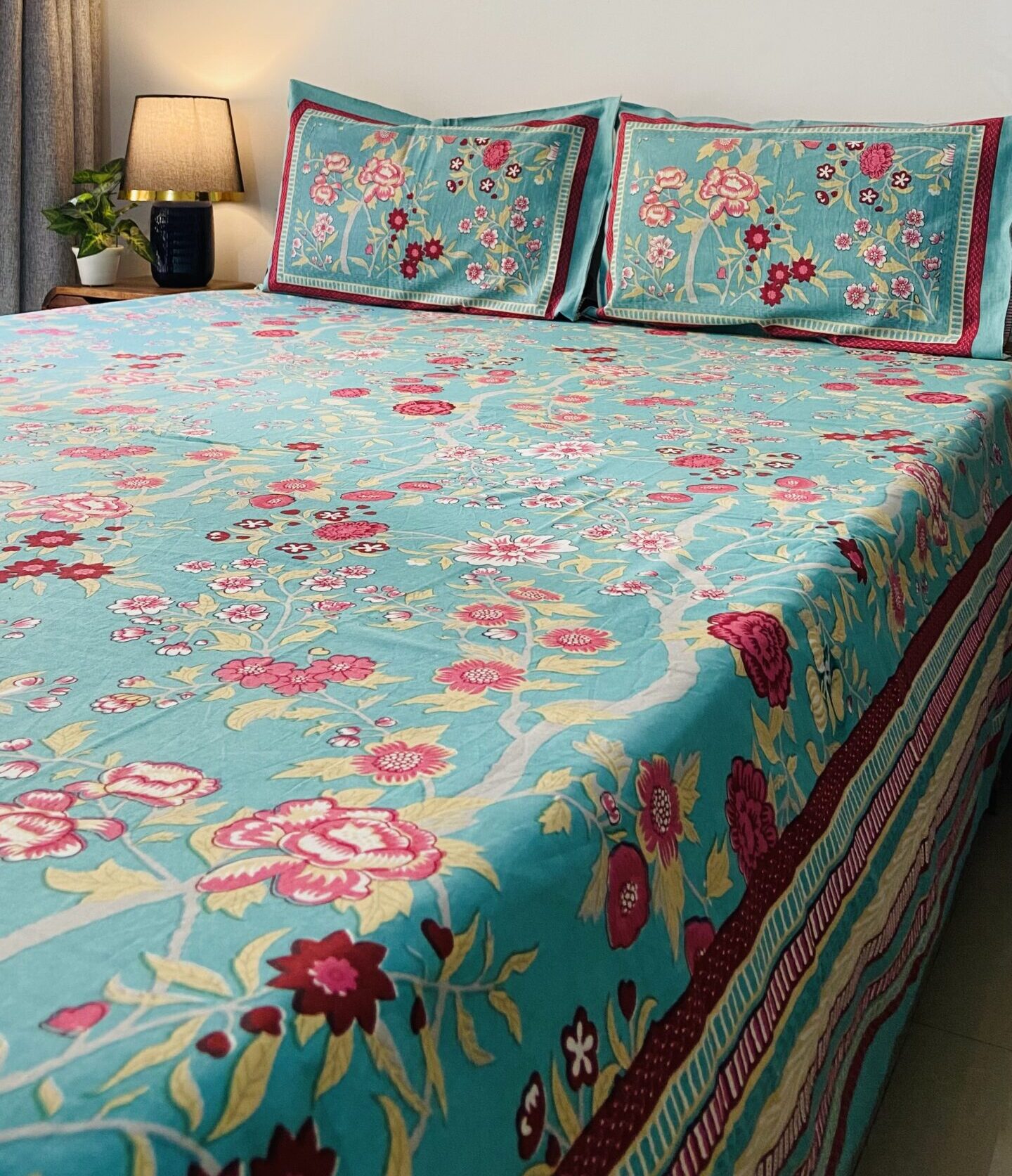 Made from 100% pure cotton, this premium bedsheet is machine washable and features fast colors, ensuring long-lasting vibrancy. Its intricate floral patterns and soft fabric make it the perfect blend of tradition and sophistication.